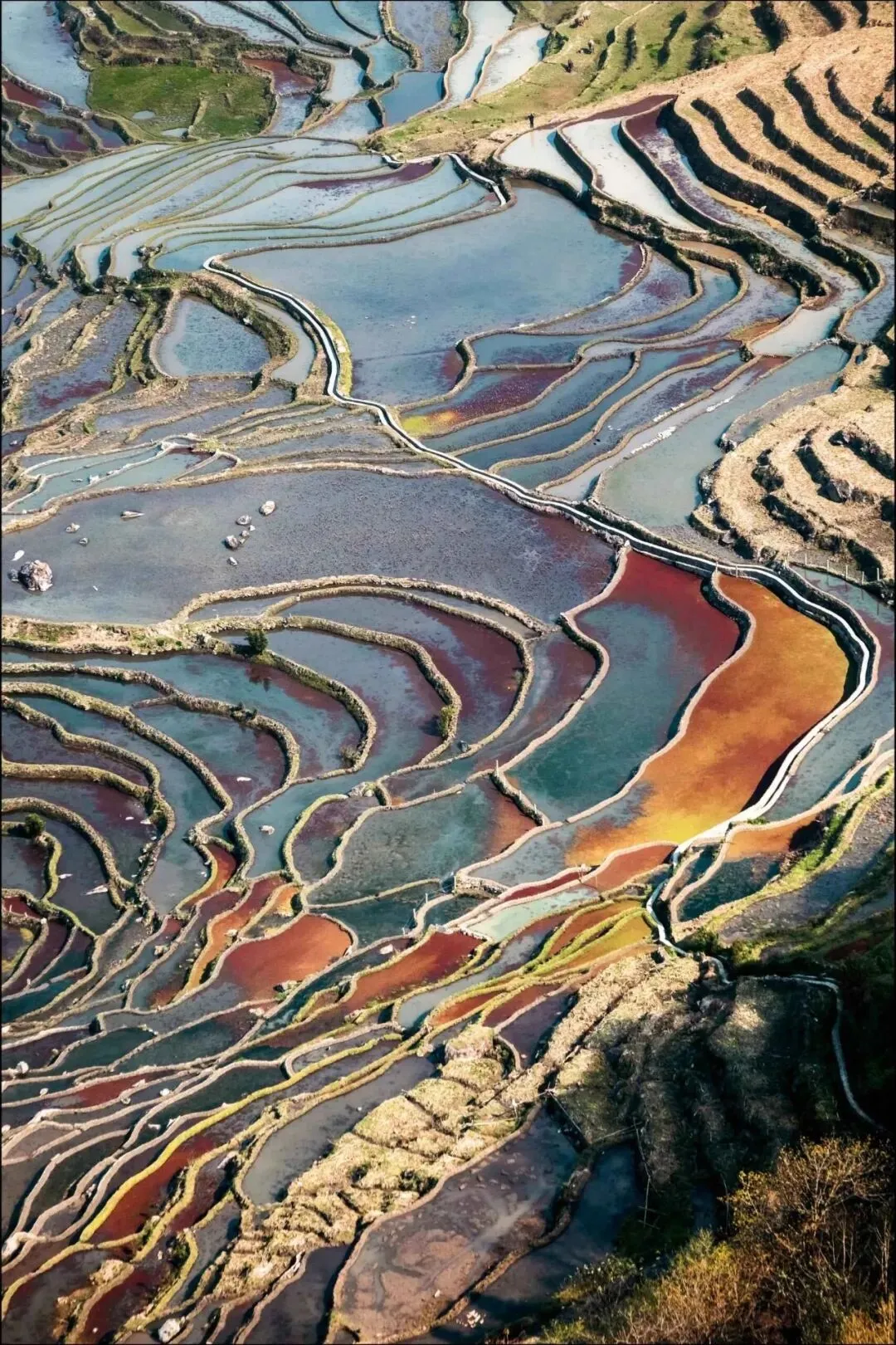 站在.多依树的观.景台上等日出,.脚下的.梯田.灌.满了水,像千万.片碎镜子.拼在一.起。哈.尼.族的.寨子还.在晨雾里没醒,只有.一缕炊烟慢.悠悠地升起.来。光影挪动.的速.度,是以小时计算.的。