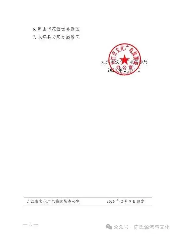新春将至,喜讯传来。2026年2月9日,九江市文化广电旅游局发布公告,确定7家旅游景区为国家3A级旅游景区,德安县义门陈景区位列其中,在春节前夕斩获国家级3A景区殊荣,为赣北文旅发展再添新名片,也为新春佳节增添了浓厚的喜庆氛围。