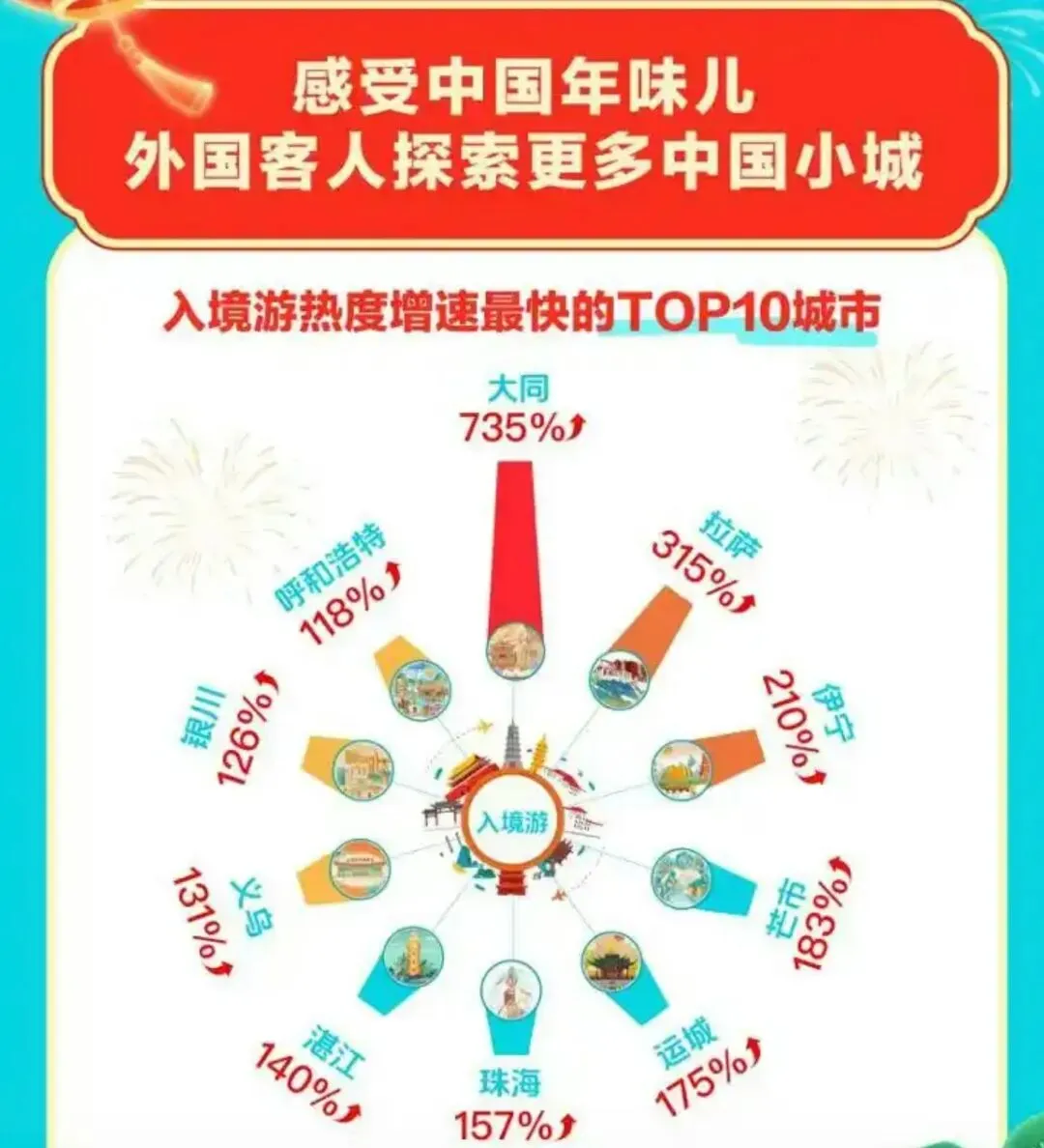 入境遊方面,隨着中國對愈來愈多國家開放免簽,外國遊客「扎堆」來過中國年。去哪兒數據顯示,截至2月17日,春節期間使用非中國護照預訂國內航班的數量同比去年增長兩成,熱門目的地包括上海、北京、廣州、成都、深圳等十個城市。三亞表現尤為突出,使用非中國護照飛赴三亞的增幅超過了3倍,飛赴哈爾濱、西安、長沙、濟南、深圳、海口、無錫、延吉、臨沂的外國遊客增幅亦翻番。從客源地看,來中國過年遊客最多的國家包括韓國、越南、新加坡、澳洲、印尼、泰國、加拿大、美國、馬來西亞等。