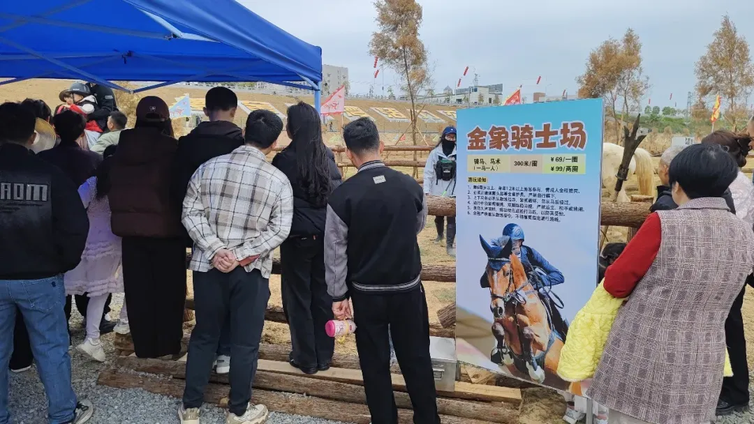 作为高要区城区首个集运动、休闲、娱乐于一体的综合性主题公园,开园首日推出了多项特色项目,满足全年龄段游客需求。其中,骑马体验区成为最火爆的打卡点。数匹骏马在专业教练的牵引下,载着游客绕场而行,马蹄声声,意气风发。正值丙午马年新春,市民们争相体验这项寓意“马到成功”“一马当先”的特色活动,为新年讨个好彩头。市民欧先生:“骑了马很开心。金沙滩和国荞公园文化气氛都很好,祝大家马年大吉,新年顺顺利利!”