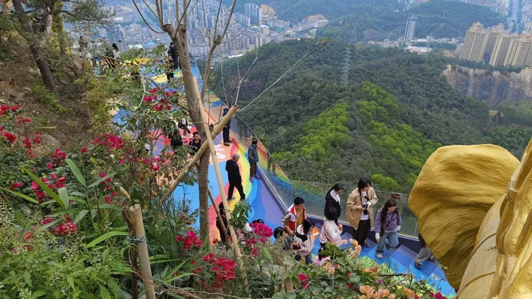 与金象湾活力公园相邻的金象山森林公园同样迎来客流高峰。这座免费向市民开放的森林公园,凭借其完善的登山步道和优美的自然环境,成为市民新春登高祈福的理想去处。