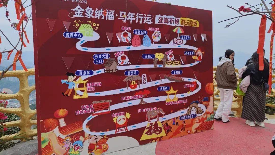 金象山森林公园运营负责人谢振菁介绍,春节期间,金象山森林公园增加了很多气氛组的活动,期间还会有财神巡游送金币、猜字谜、迎金币等活动,希望市民游客来到高要,不仅可以看到高要的美景,还能参加景区的财神互动,迎来好意头。