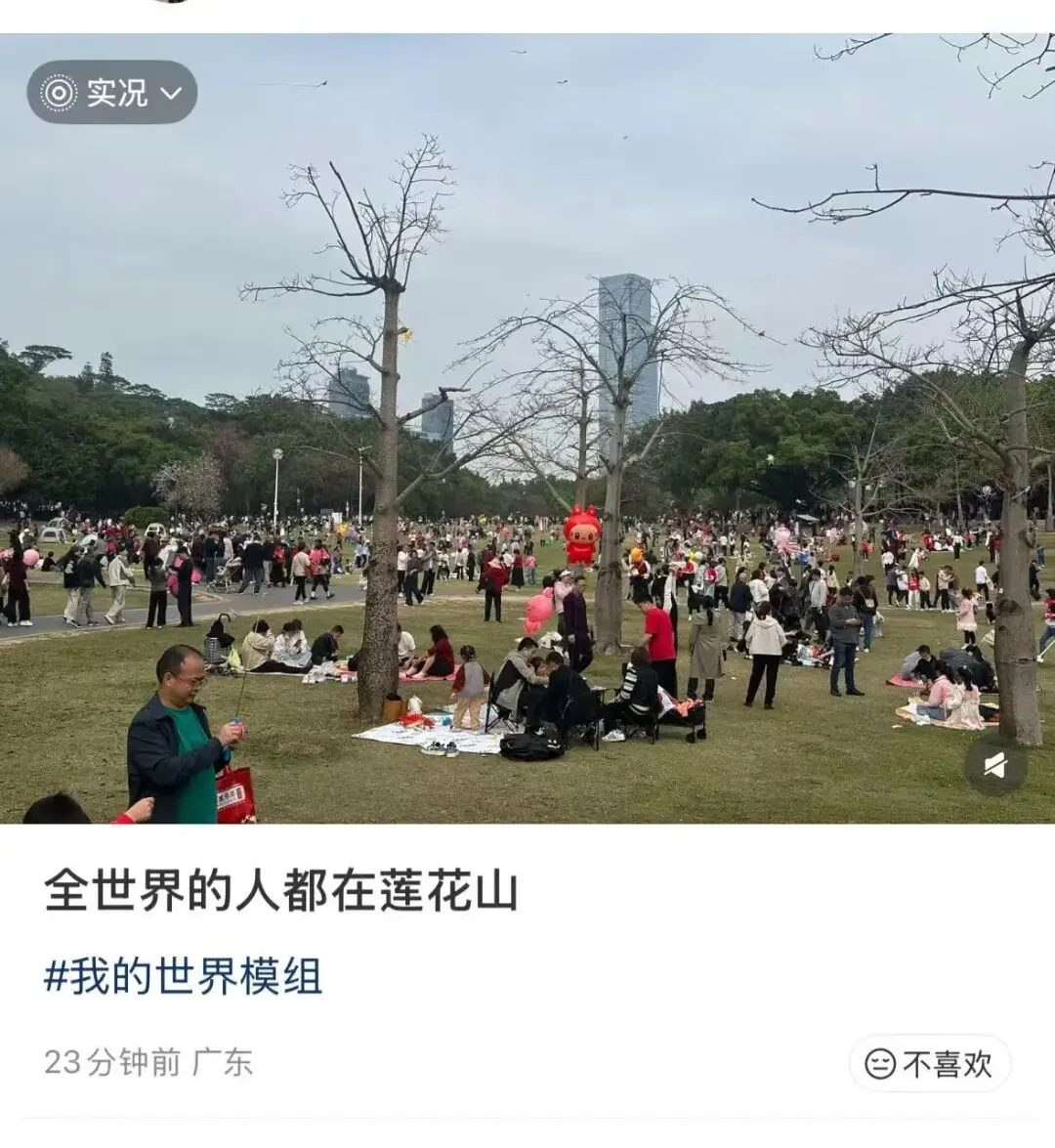 另一半人在深圳湾公园 有市民在社交网络发帖称 今天的深圳湾公园人挤人挤人