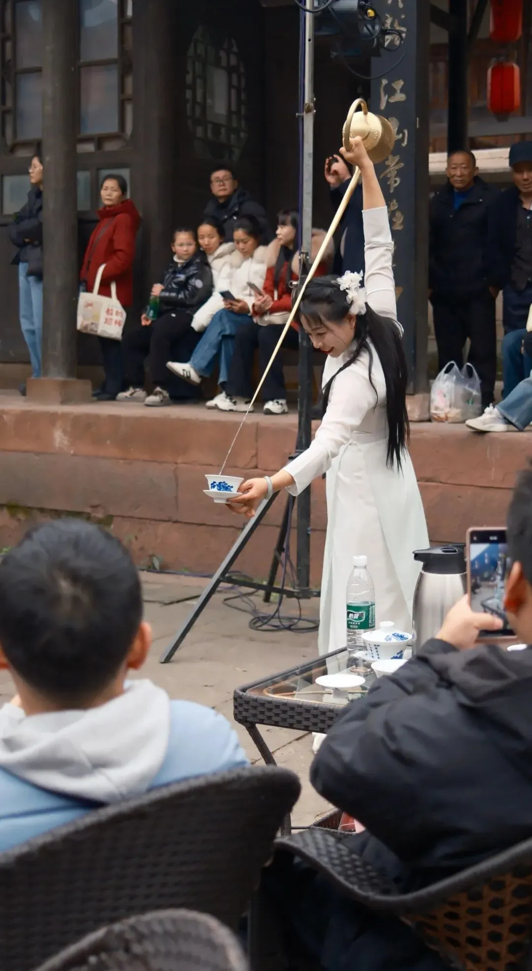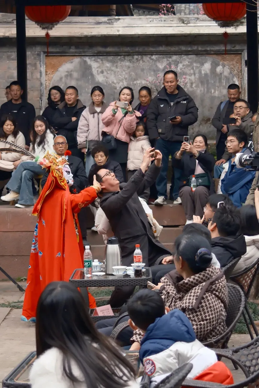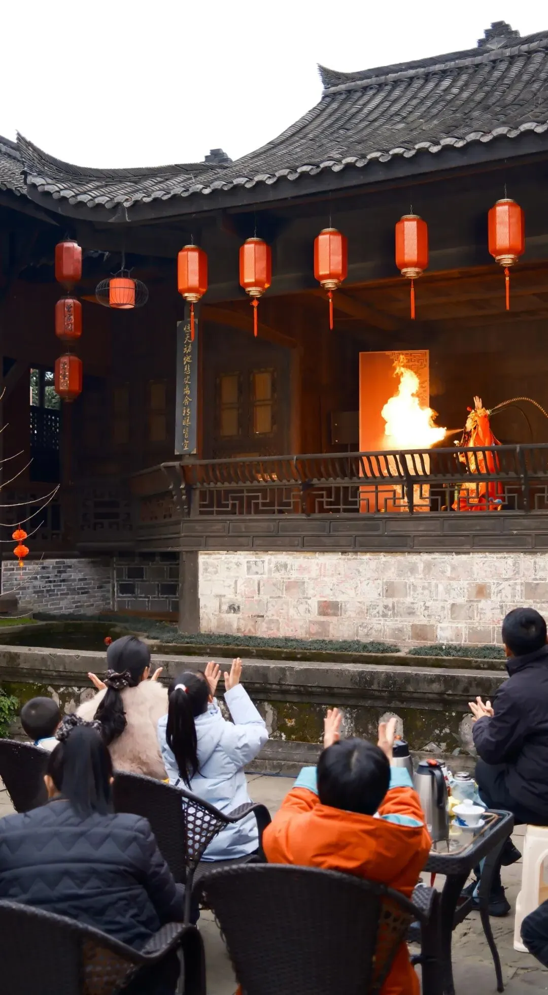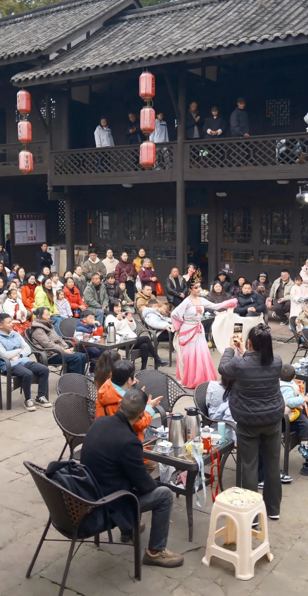 14:30,曾家戏楼座无虚席。激昂鼓舞、生动评书、典雅戏曲水秀、风趣脱口秀、惊险变脸喷火、飘逸长嘴壶茶艺……将在雕梁画栋间轮番上演。于悠悠唱腔中,邂逅旧时川西的雅韵风情,触摸时光沉淀下的文化温度。
