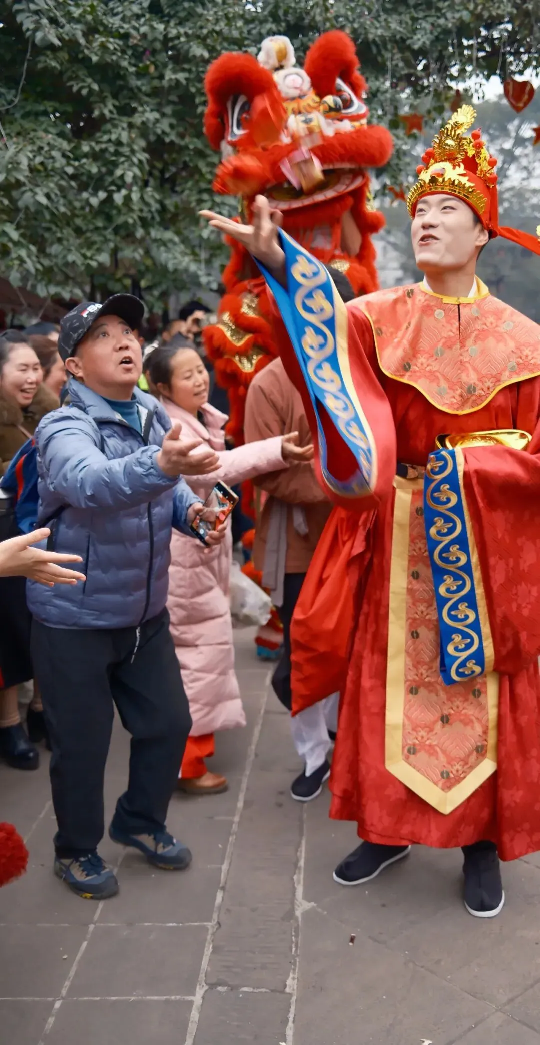 从火烧坝出发,财神爷的醒狮队伍一路舞过石板街、洪雅好物文创店、圆木桥、临河占道……所到之处,人人伸手接“福”;牛儿灯为您“犁”开一年的好运与丰收!
