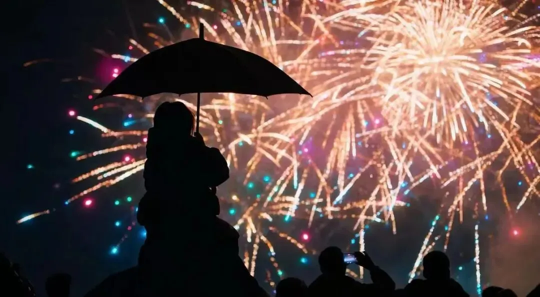 当烟花在古镇夜空绽放,宛若银河倾泻,照亮每一张仰望的笑脸,将新年的喜悦与浪漫推向顶峰。