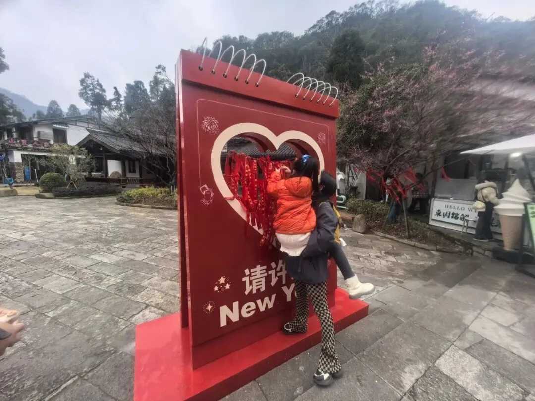 与此同时,各售票点、网红休憩点还有工作人员特别准备的新春祈福红绸,市民游客在上面写上各自的新春祝福,挂在指定处,风过时如赤浪翻涌,传递雁荡山独有的“福临”记忆。