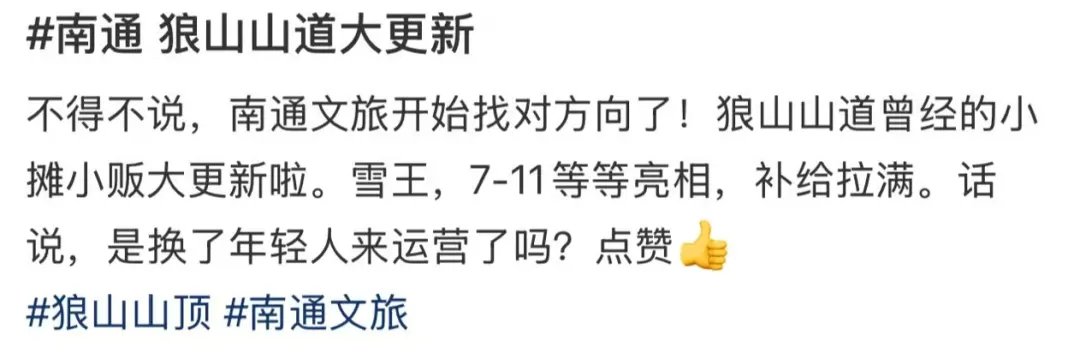 南通一景区“大换血”!网友:童年记忆不再……春节爬一趟狼山 应该是南通人每年雷打不动的习惯吧 据网友晒图 这两天的狼山简直被游客攻陷 不知道去过的你们有没有发现 狼山景区内的商业氛围“卷”起来了 一网友发文表示 那些记忆中的老旧小商铺不见了 取而代之的是一排自带流量光芒的新面孔 711便利店、蜜雪冰城、糖水铺…… 一眼望去,全是年轻人熟悉的“网红标配”