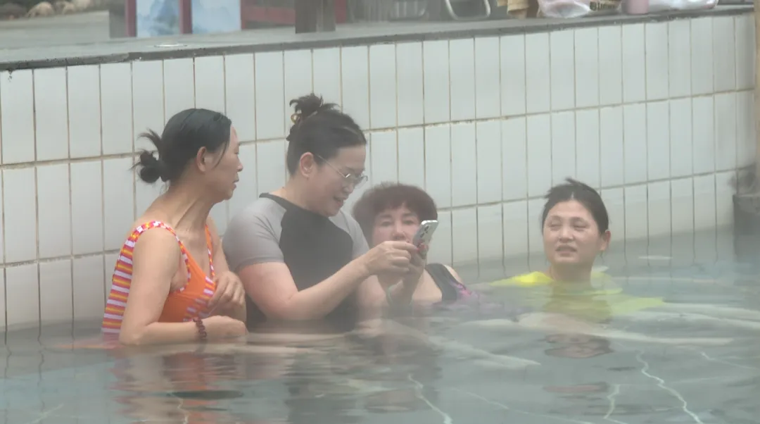 游客 陈女士 我每年都到这里来泡温泉,这里风景也好,空气也好,挺舒服的。泡个温泉,然后吃个吊锅,这里交通也很方便,在这里吃吊锅特别特别的开心。