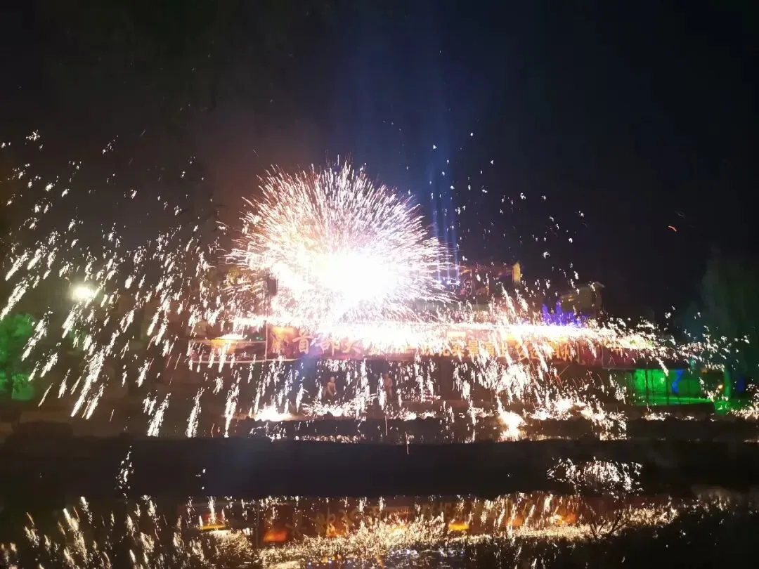 当 1600℃的炽热铁花在夜空中炸裂如星河坠落、似火树银花 配合着跌宕起伏的剧情, 点燃的不仅是夜空 更是华夏儿女心底的文化豪情 这是一场视觉与心灵的双重震撼!