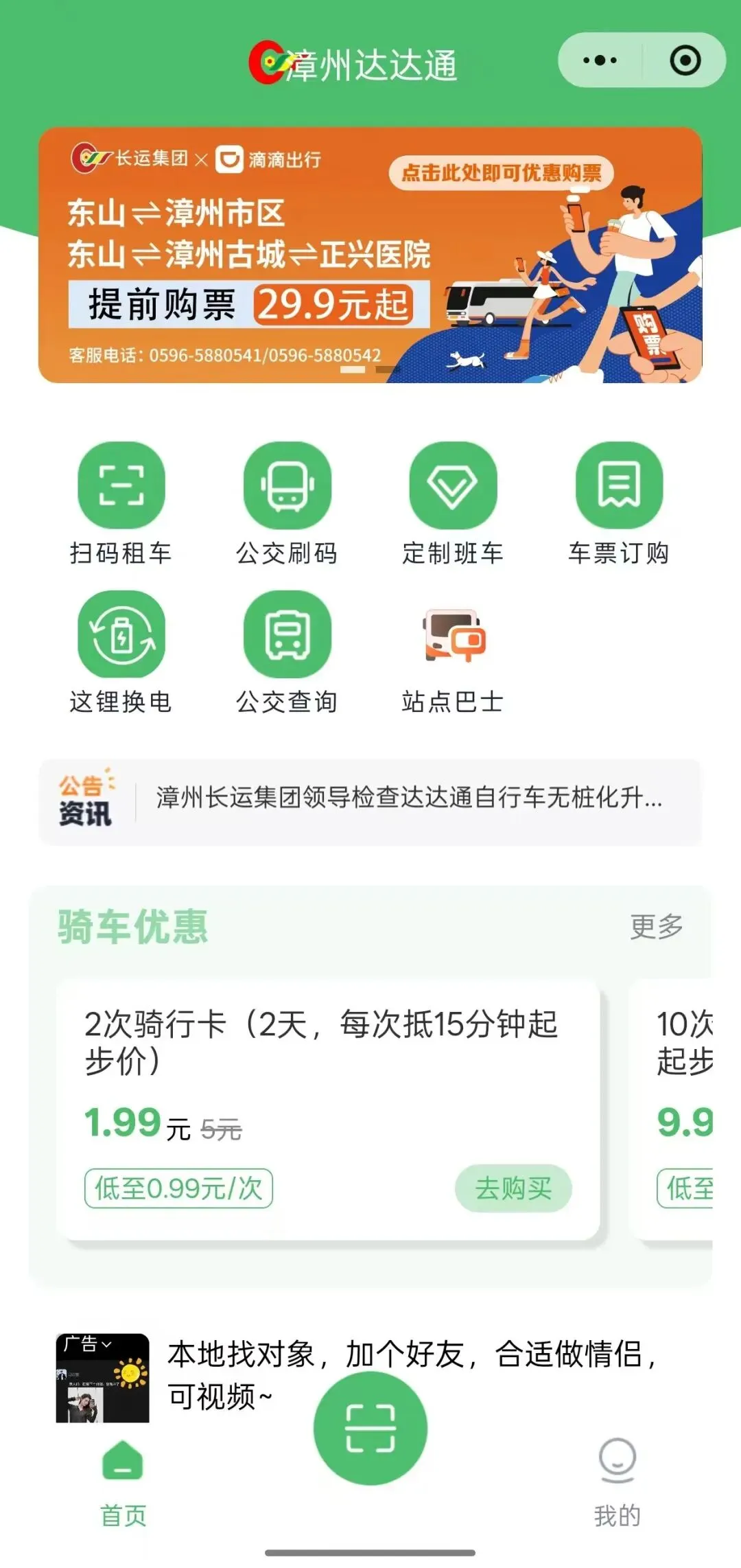 二、“漳州达达通”小程序