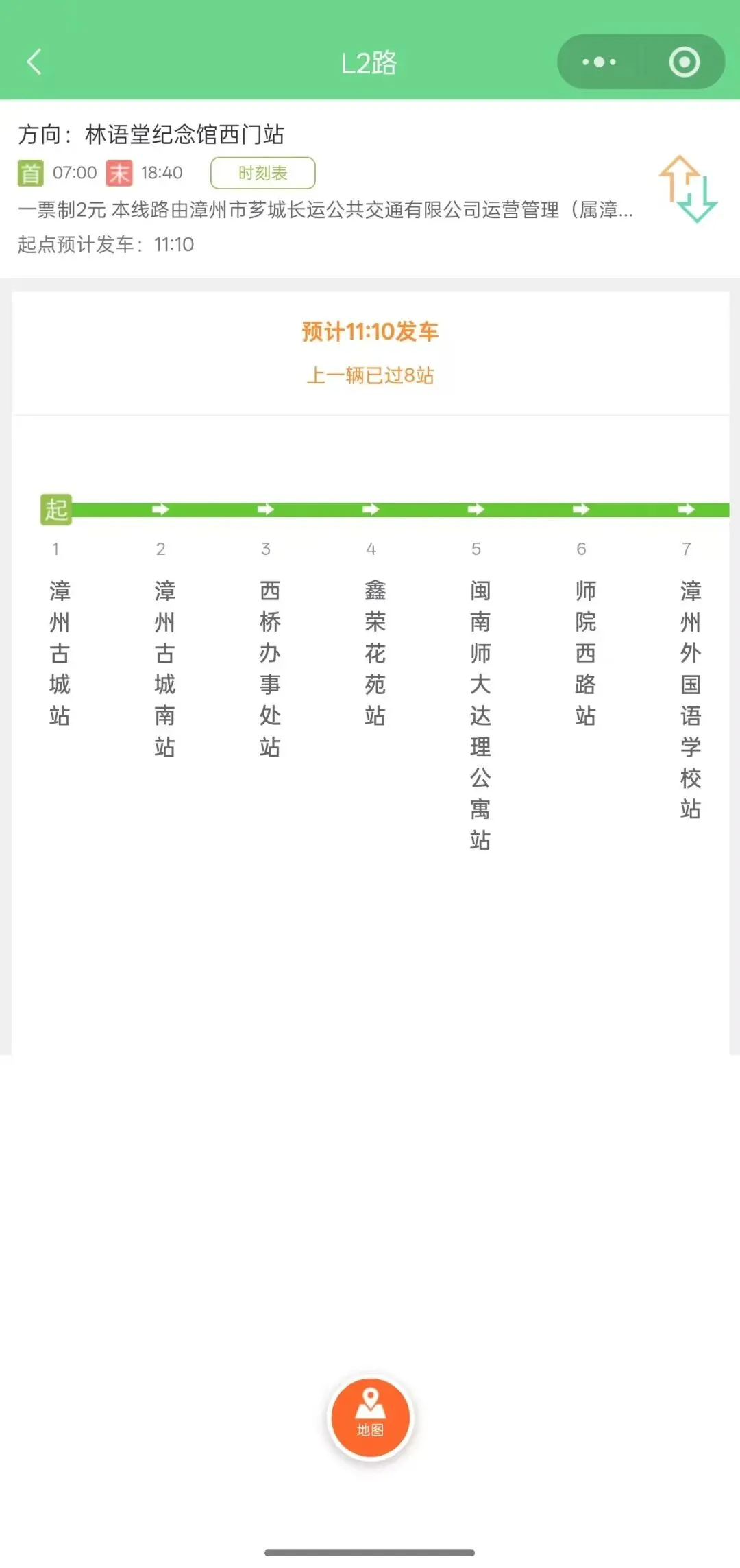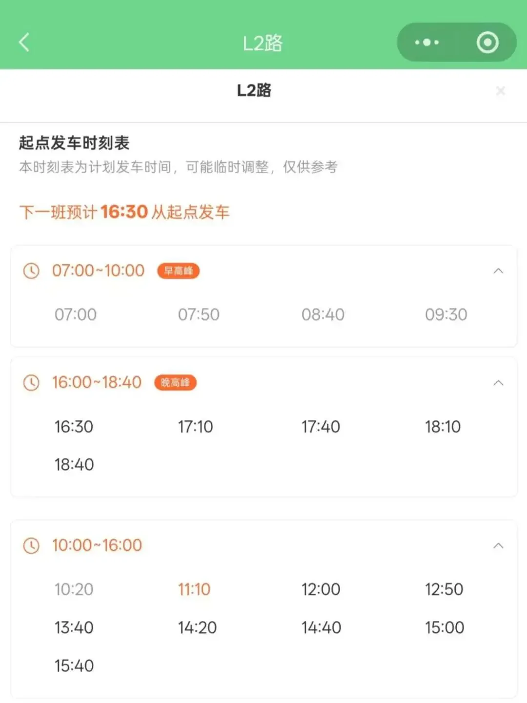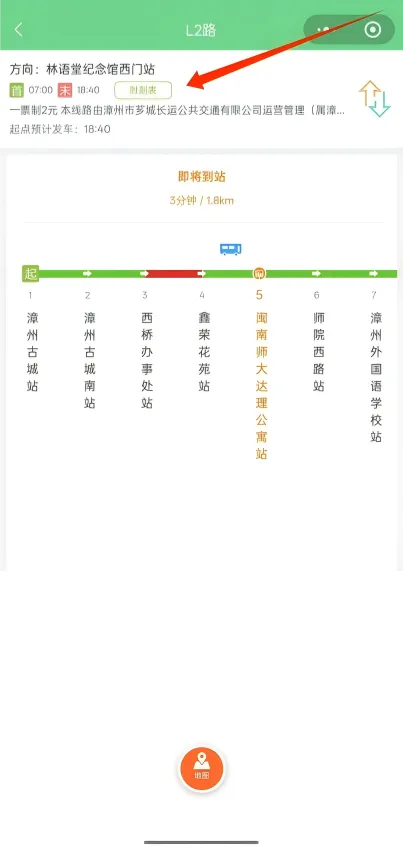 点击时刻表,可以查看L2线路公交发车时刻表。