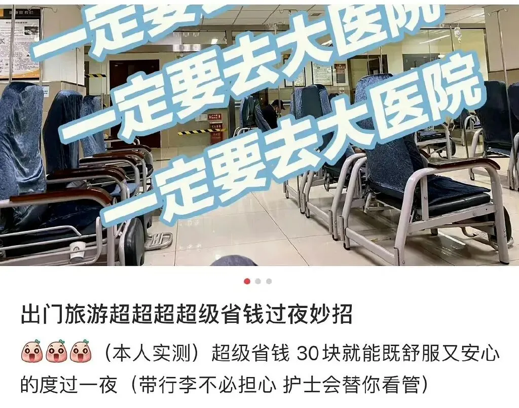 本文作者:以酥 近日,某社交平台博主在自己分享的旅游经验中建议,出门旅游可以选择在医院的急诊过夜。