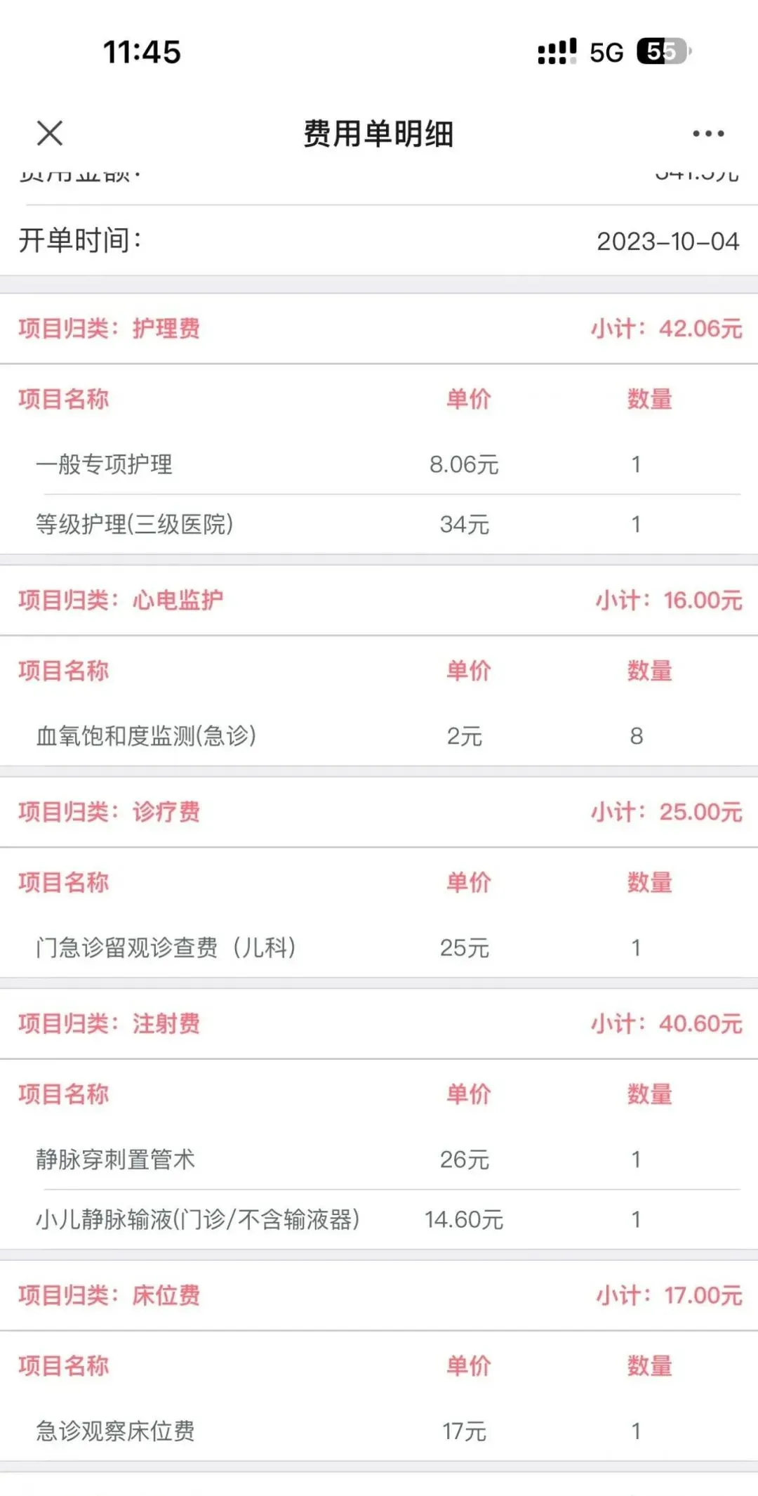 一博主贴出的急诊留观一夜费用截图
