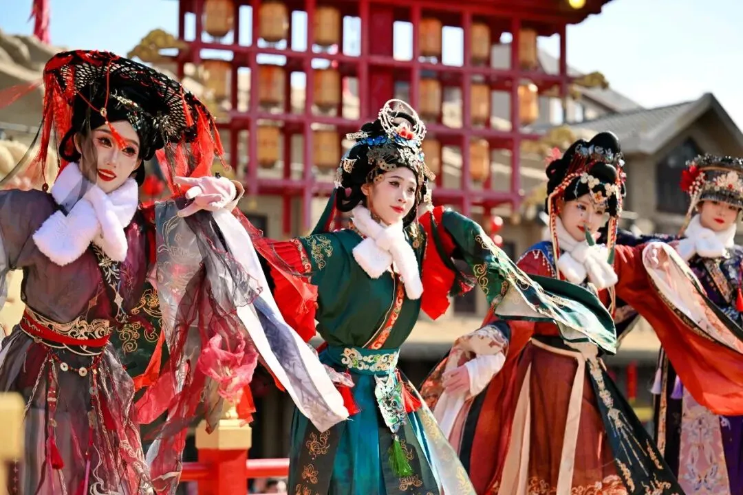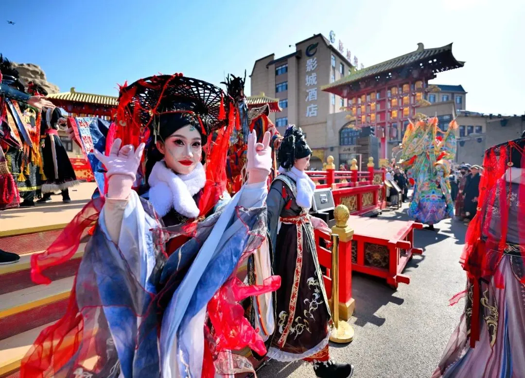 从12时至21时,小镇演艺持续上演。《花儿迎宾》《春官赐福》《憨婆娘赶大集》等节目精彩纷呈。游客化身参与者,在古丝路集市挑选手工艺品,于民间游艺区体验投壶套圈,跟着国潮快闪舞动,非遗大巡游更将欢乐氛围推向高潮。