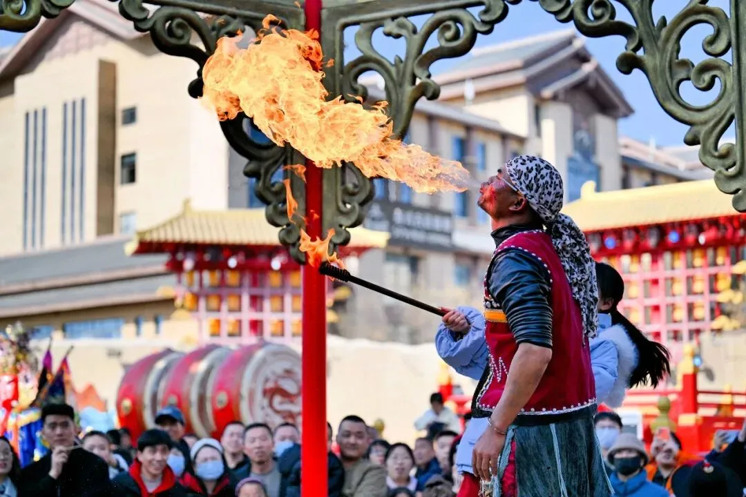 2月17日,“七省超火非遗,贺兰山下过大年”主题活动在漫葡·看见贺兰沉浸式演艺小镇上演。