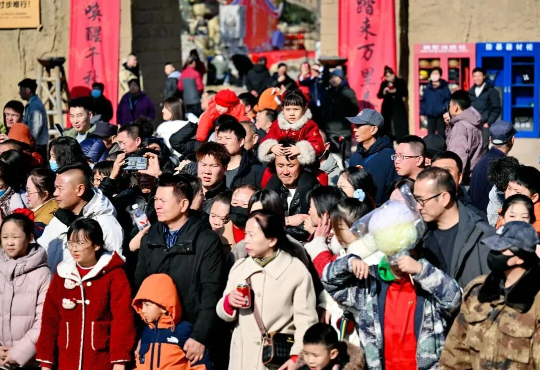 2月17日,农历正月初一,银川贺兰山脚下的漫葡·看见贺兰沉浸式演艺小镇游人如织,迎来马年新春“开门红”。中午起小镇便客流如潮,下午“七省超火非遗,贺兰山下过大年”主题活动正式启幕,游客仿若置身流动的“非遗年画”。