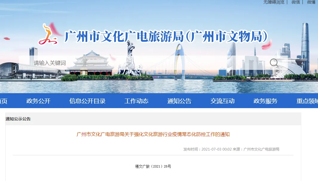广州市文化广电旅游局关于强化文化旅游行业疫情常态化防控工作的通知