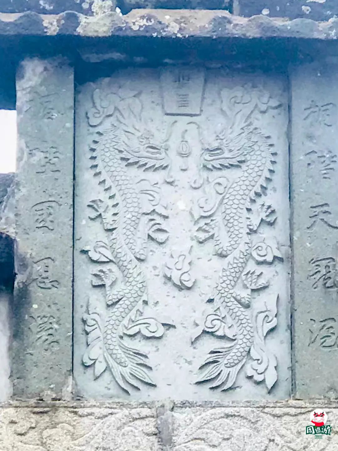 四柱三门的架构,古朴凝重的造型,精致的石件,龙凤浮雕围绕着“圣旨”字样,给人以肃穆清高感受。