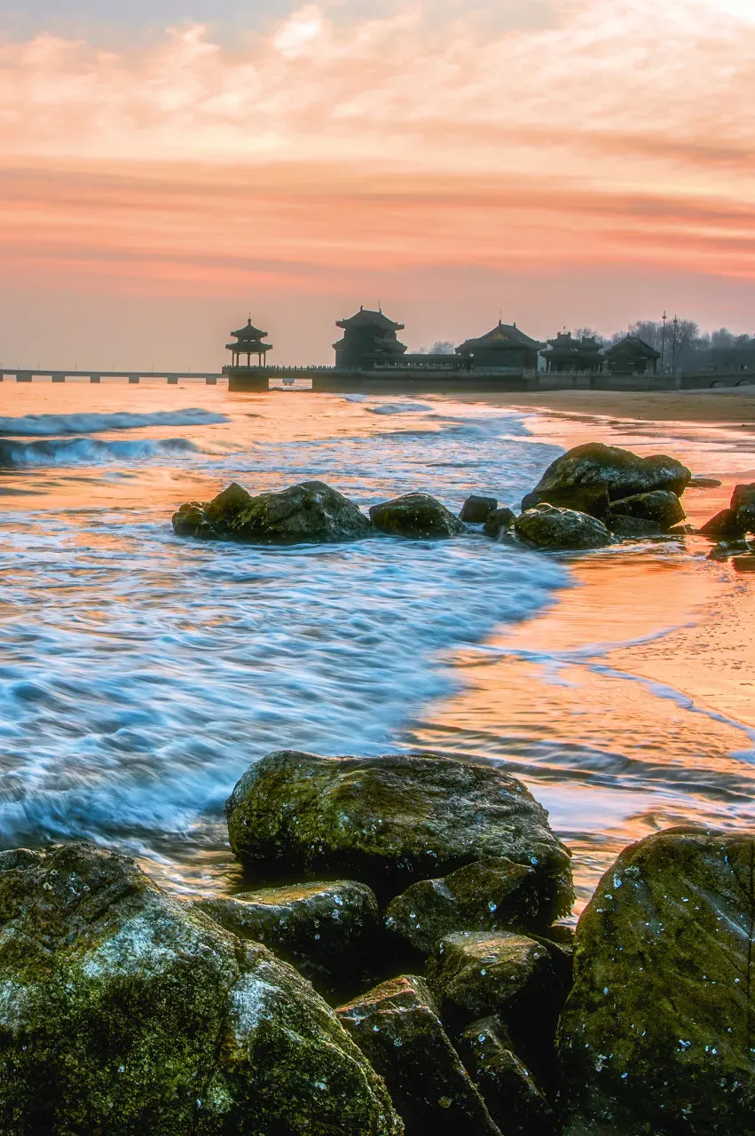 东边的老龙头,是长城唯一探入大海的地方。落日时分,城墙、礁石、海浪都被镀上一层金色,那种苍凉与壮阔,很难用言语形容。