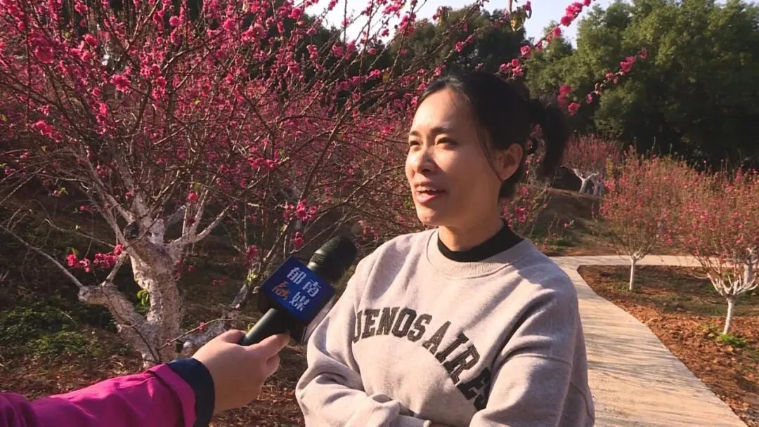 今年桃花好看,相比以前(桃花)这几年越长越大,越开越多,年年都过来玩,每年都很多人很热闹。除了我们本地人之外还有很多游客都会过来(赏花)。