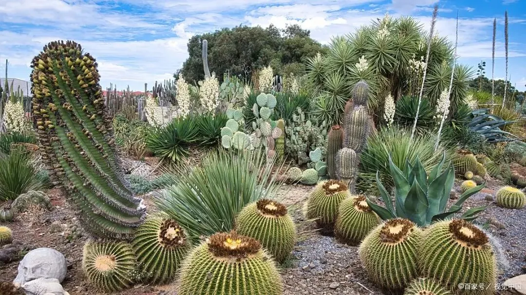 从热带雨林区往山上走二十分钟就到了多肉植物区,引入眼帘的是一大批的仙人掌和各色热带多肉,多肉区通过沙生植物造景,营造出荒漠与绿洲交织的奇幻意境。3米高的武伦柱如绿色巨塔直指蓝天,金琥仙人球阵列似黄金铠甲铺展,搭配砂岩地貌与晨雾,形成光影交错的“沙漠星球”景观。在一个貌似透明城堡的仙人掌馆里,我们看到了上百种千奇百怪的仙人掌。在这颗蓝色星球上,每个生命都在以独特的方式书写着生存的史诗。这个对我们比较新奇的多肉植物区,正是这样一个唤醒生态自觉、启迪生命智慧的自然课堂。