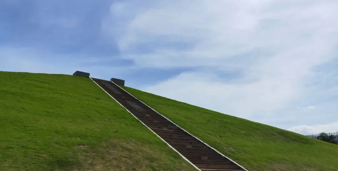摄影师小姐姐的出现让我们有点意外,完全是一副路人甲的打扮,和我们在青岛预约的那位带着长枪短跑摄影器材和一些背景道具的摄影师小哥哥风格迥异。她背着一个不大的双肩包,双手空空地就轻飘飘地向我们走来。这位笑盈盈的小美女从背包里先掏出了一个小礼袋送给我女儿,女儿很意外也很开心,她们立即奔往公园的草地金字塔先拍一组阳光遇见绿意的美照。女儿偷偷给我说,摄影师小姐姐还很会拍照的呢,她挺满意的。这也真是一个意外的惊喜,在那么短的时间里通过小红书约摄影师,也就好比开盲盒,不过至少这些摄影师比我拍得好多了。