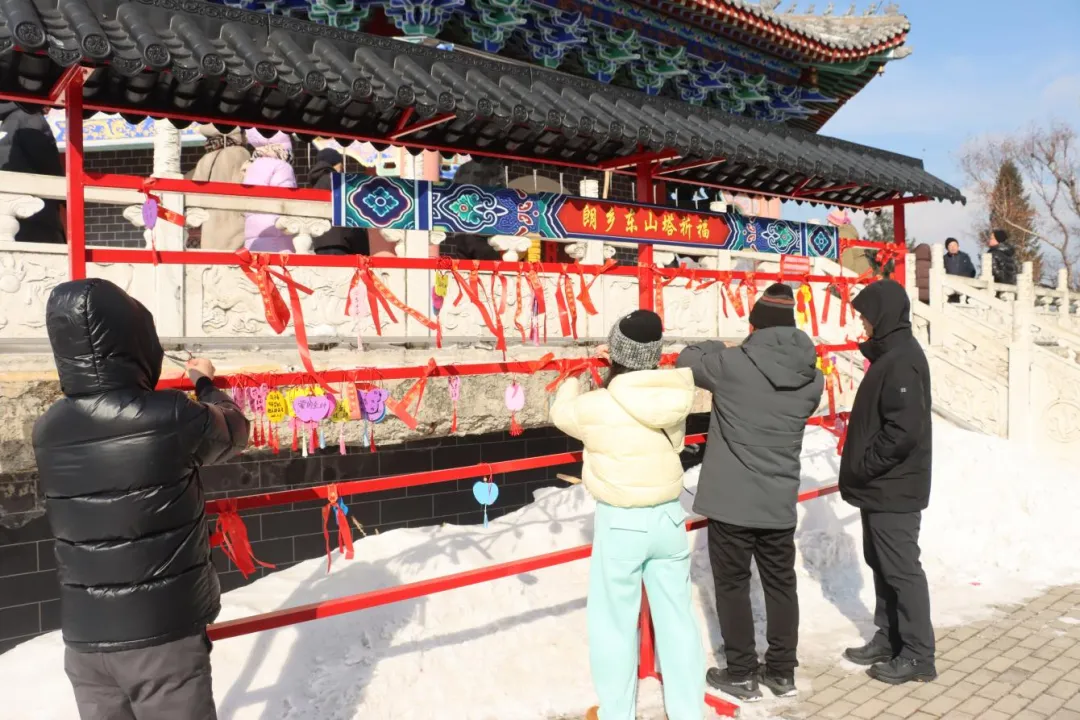 登高祈福是林区传承已久的风俗。朗乡东山公园人头攒动,新春登高祈福活动温情启幕。当地居民与游客结伴登山,一路赏林海风光,在东山塔下悬挂祈福带、祈福牌,与林间飞鸟相伴互动,让传统民俗在生态文旅融合中焕发新生。如今,朗乡东山唤鸟祈福已成为特有的人文景观,在传承年俗的同时,为伊春森工文旅发展注入蓬勃活力。