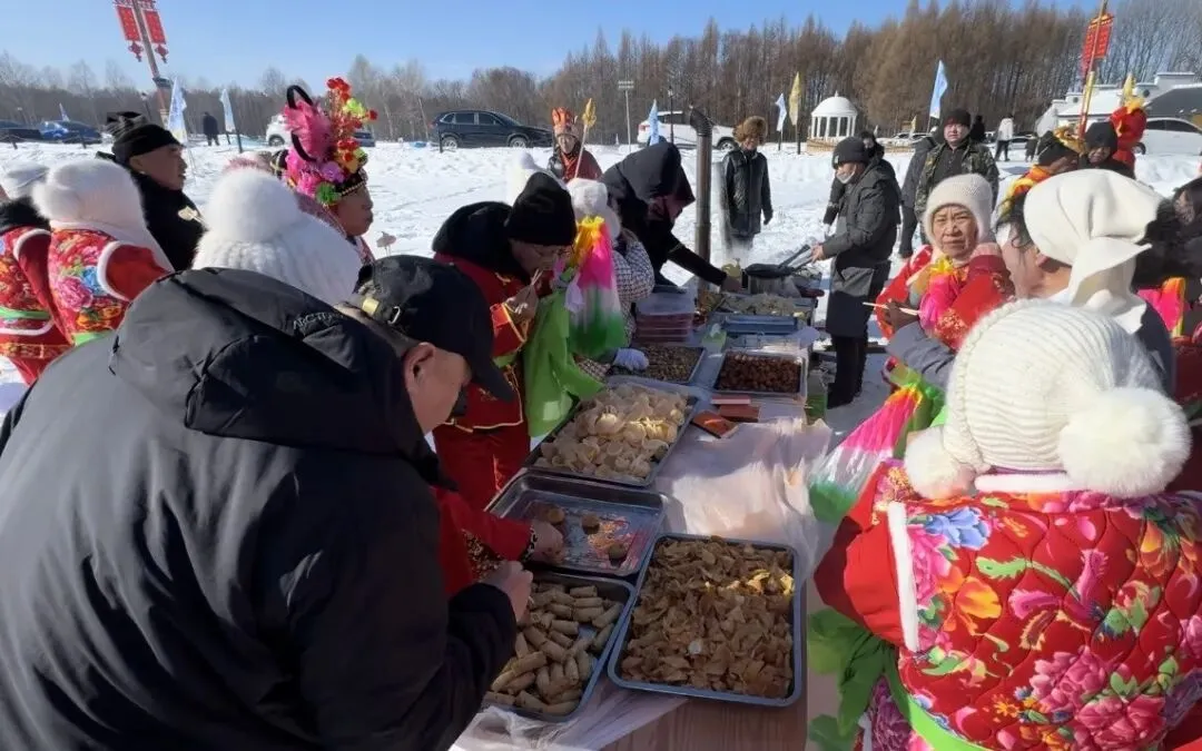 走进上甘岭溪水公园,阳光洒在白雪覆盖的森林上,锣鼓声已然喧天。秧歌队身着彩衣挥舞彩扇,扭出东北人的豪迈与热情,孩子们跟在队伍后面手舞足蹈。美食摊前,刚出锅的炸丸子、炸春卷香气四溢,游客围坐一起,天南地北的口音聊着各自的年俗。“在森林里体验到这么浓的年味,像在亲戚家一样温暖。”来自南方的游客王女士笑意盈盈。