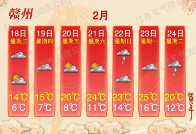 19日:赣北、赣中多云间阴天,部分地区有短时小雨;赣南多云。