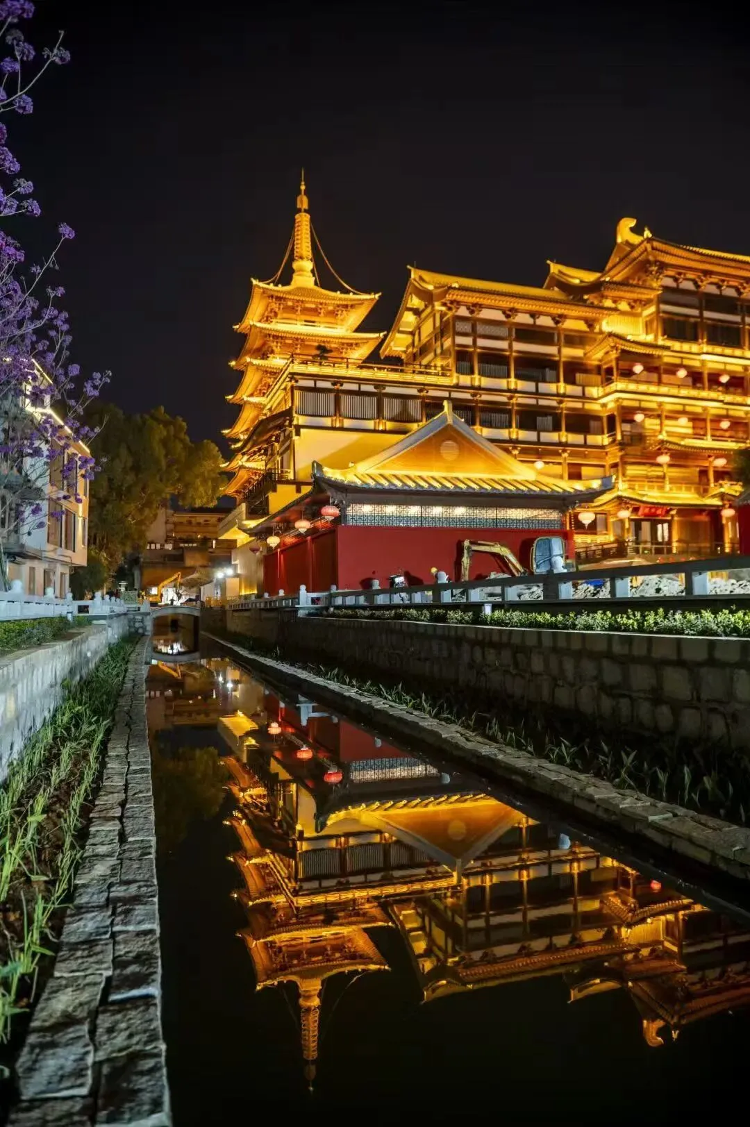 夜幕降临,灯光将大雄宝殿、双塔衬得金碧辉煌,流光溢彩,形成绝美夜景,是揭阳夜游必打卡之地!