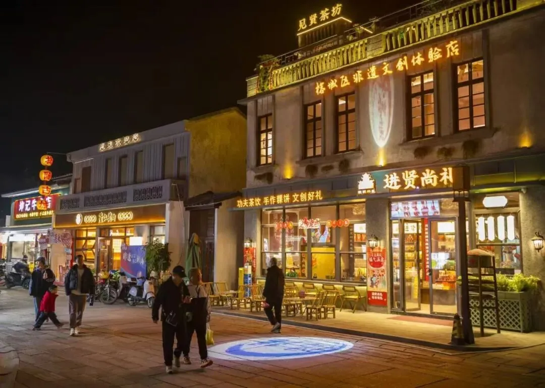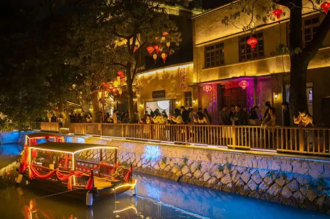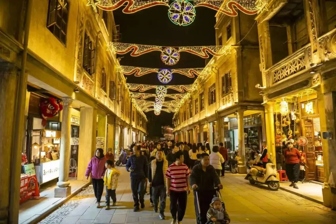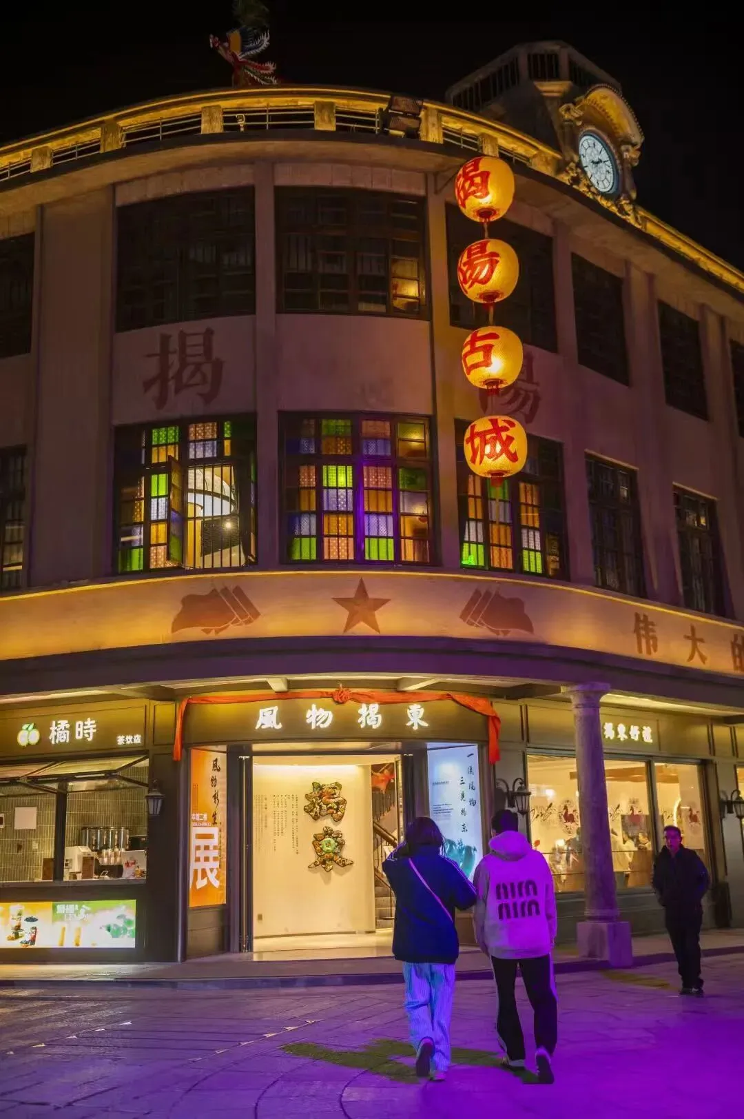 夜色里璀璨灯光与骑楼的复古质感相融,路过总会放慢脚步,感受一番老商号与新展馆碰撞出的独特韵味。