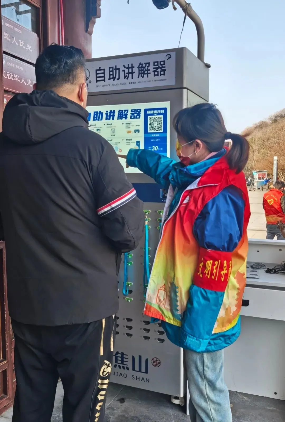 咨询台前,为游客规划路线、寄存行李,一站式搞定,轻松游焦山。