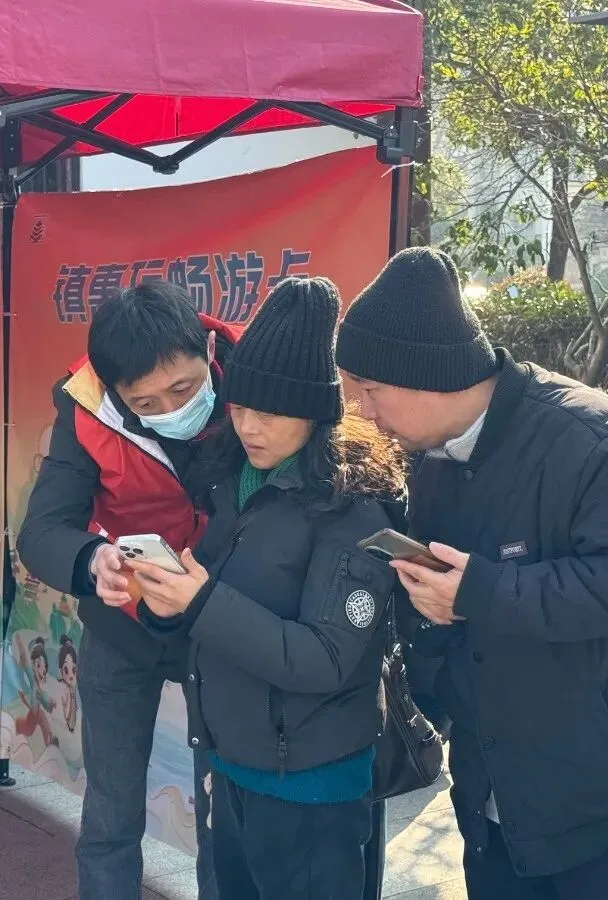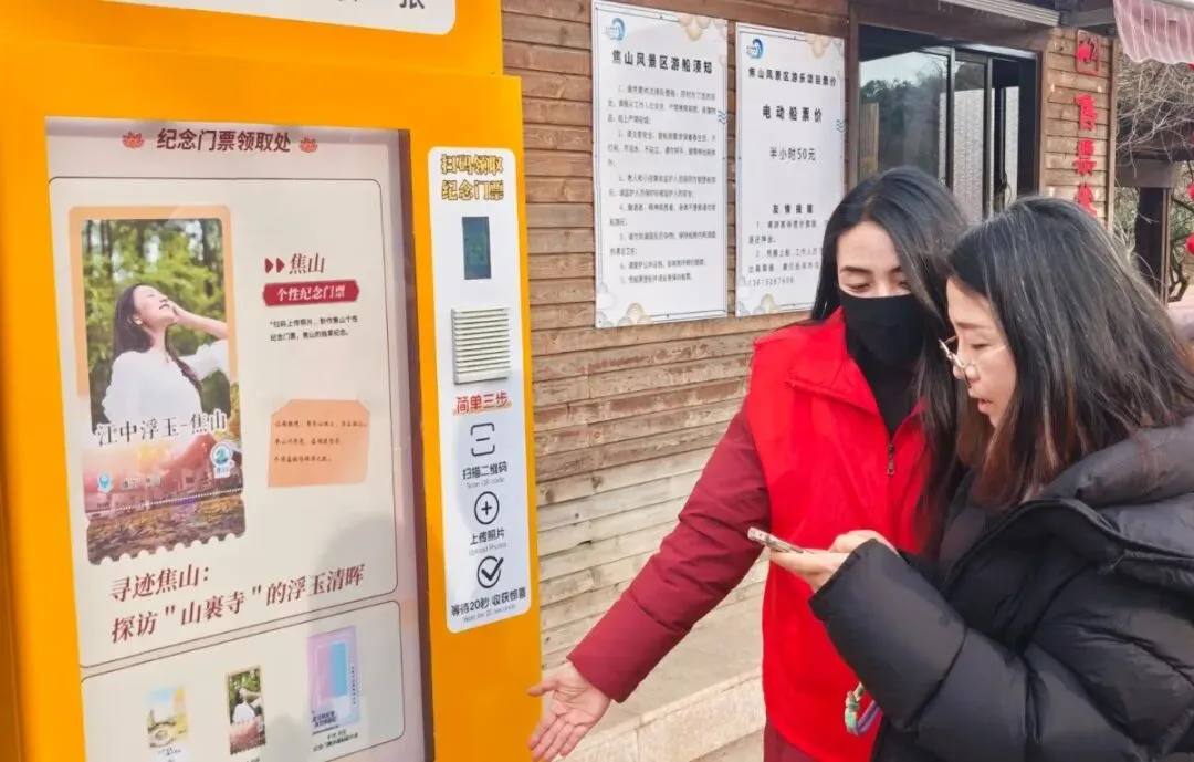 引导游客领取免费纪念门票,惊喜从指尖开始,带走一份独特的焦山记忆。