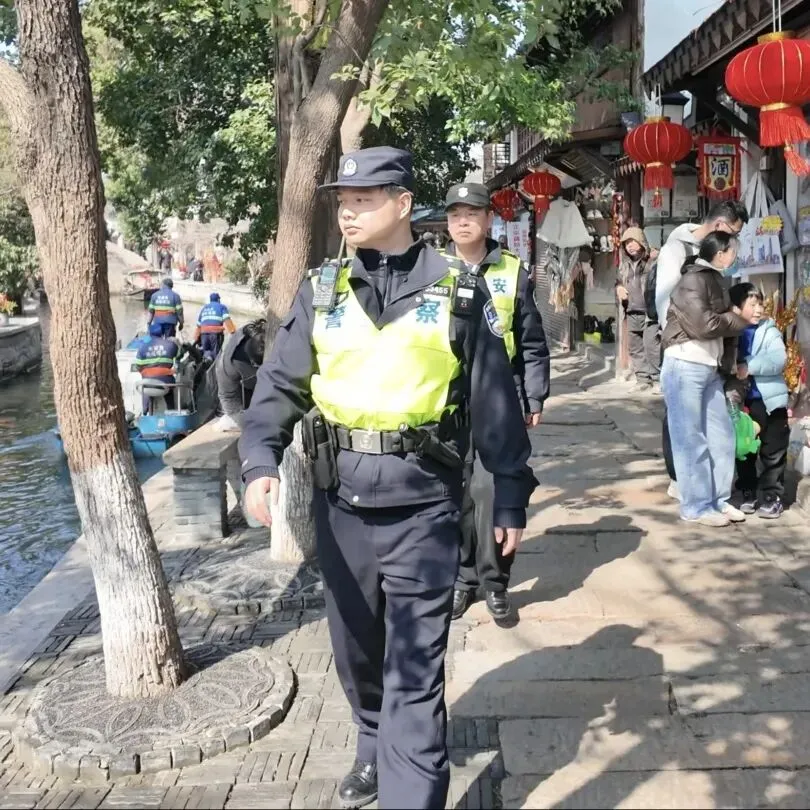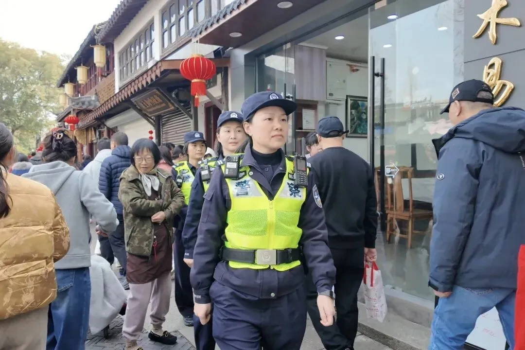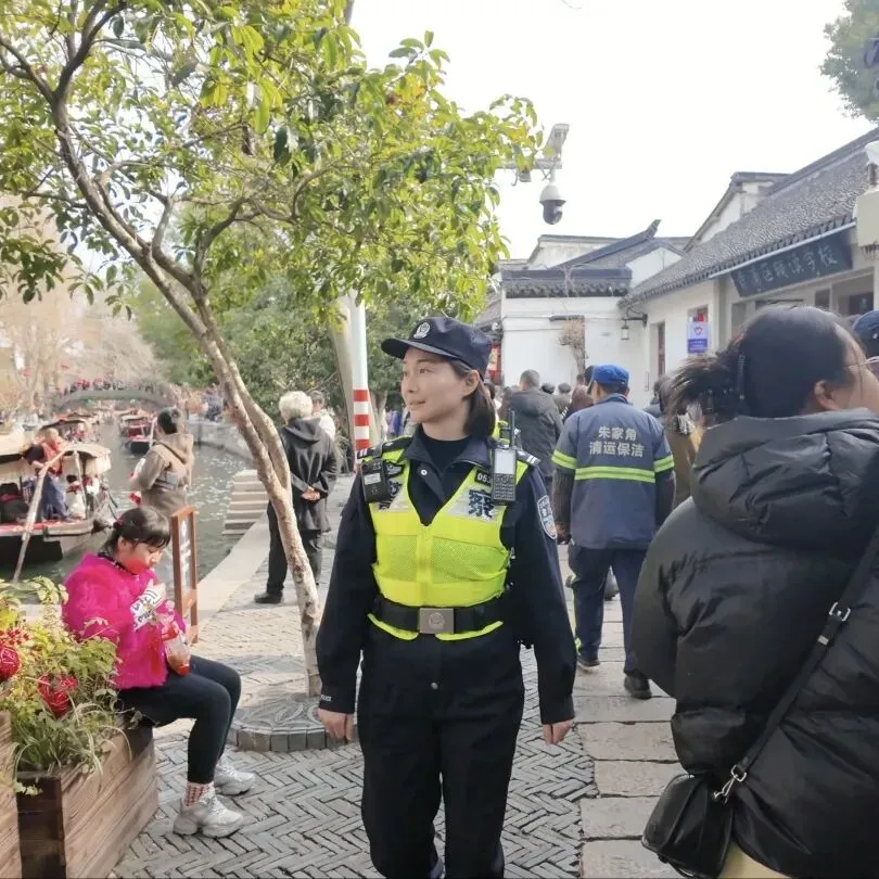 此外,一支身着藏蓝制服的朱家角派出所女子巡逻队,穿梭在人群里,成为一道亮丽的风景线。她们为市民游客提供咨询服务与帮助,对不文明行为进行劝导,维护着景区平安稳定。