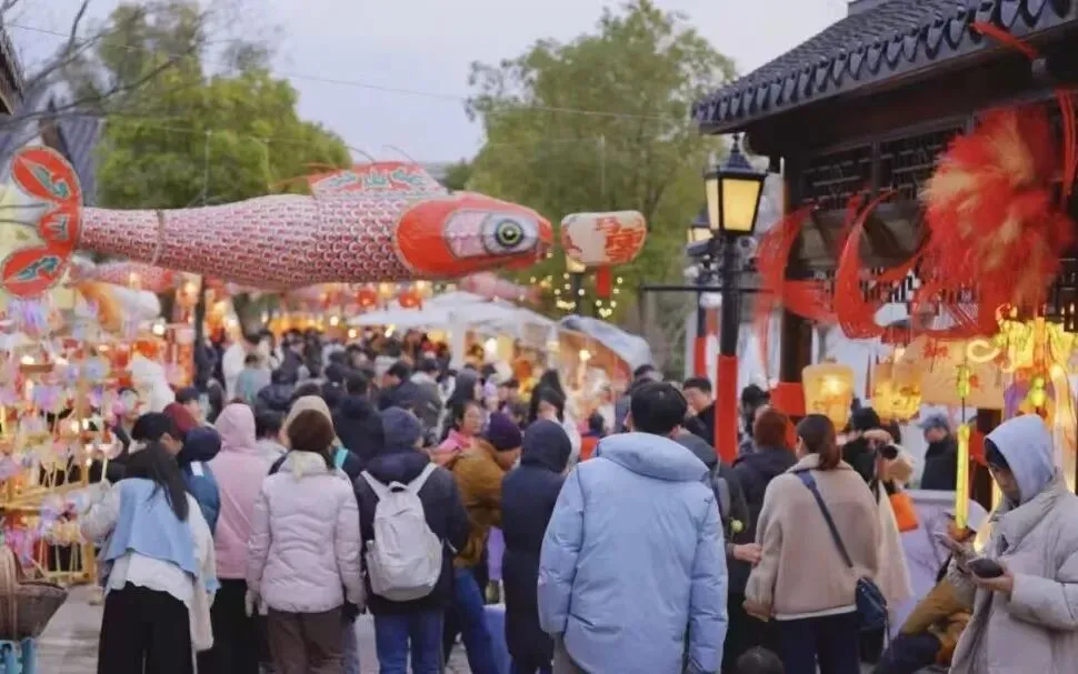 “游客您好,请有序通过环形通道进入古镇,照看好身边的老人、小孩。”新春佳节,青浦区朱家角古镇人流如织,古桥流水相映成趣,非遗展示、文创市集、提灯游园等新春活动精彩纷呈,让游客沉浸式感受传统年俗魅力。