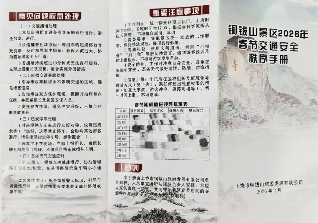 景区始终坚守安全生产底线,提前为身着红马甲的工作人员发放春节交通安全秩序手册,并开展专项安全培训,强化工作人员安全意识与服务能力。培训后的红马甲工作人员穿梭在景区入口、停车场及步道各处,有序指挥交通、引导游人,用责任守护每一位游人的出行安全,让大家玩得开心、游得安心~景区正常开放至16:30,欢迎大家有序入园,共赴新春之约!