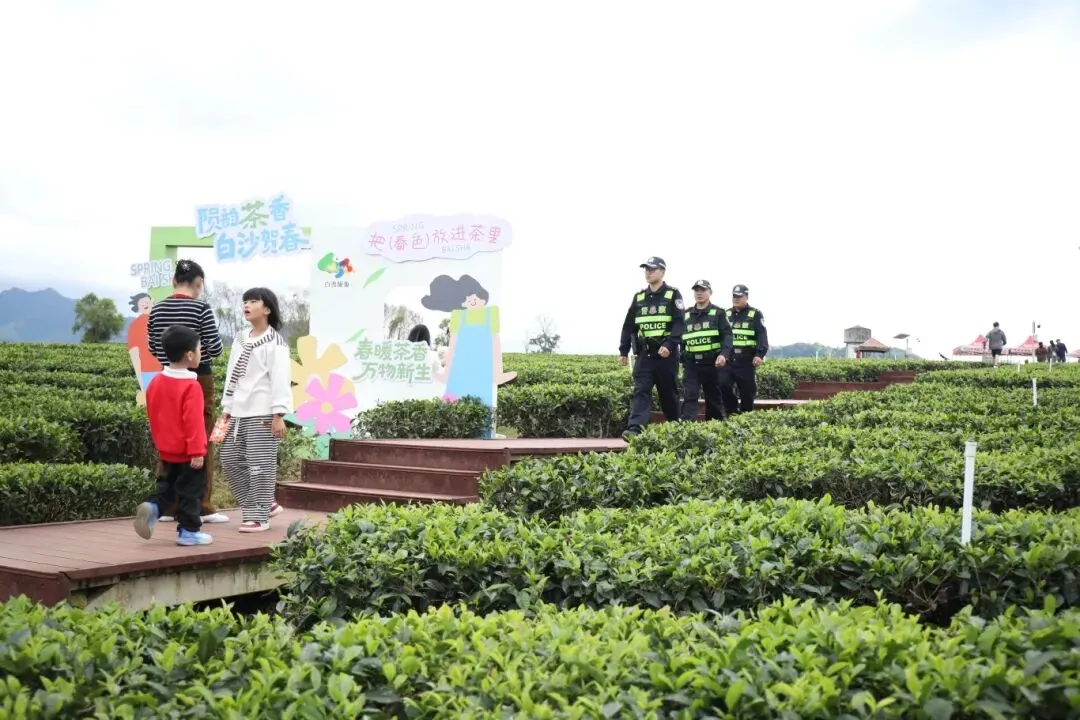 茶山作背景,警徽映初心。从晨曦初露到暮色降临,白沙县公安局的旅游警察们用脚步丈量着茶园的平安,用服务温暖着游客的心田。他们既是平安的守护者,也是文明的引导者,用坚守绘就了春节期间白沙茶园小镇最动人的平安“警”色。