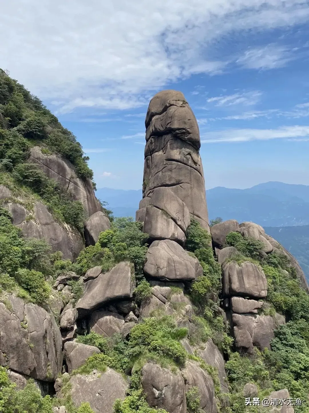 三清山又名少华山、丫山,位于中国江西省上饶市玉山县与德兴市交界处,距玉山县城50公里,距上饶市78公里,为怀玉山脉主峰,主体南北长12.2公里,东西宽6.3公里,平面呈荷叶形,由东南向西北倾斜。因玉京、玉虚、玉华“三峰峻拔、如三清列坐其巅”而得其名,三峰中以玉京峰为最高,海拔1816.9米,是江西第五高峰,也是信江的源头之一。三清山不同成因的花岗岩微地貌密集分布,展示了世界上已知花岗岩地貌中分布最密集、形态最多样的峰林;2373种高等植物、1728种野生动物,构成了东亚最具生物多样性的环境。三清山风景秀美,同时又是道教名山。1988年被列为国家重点风景名胜区,2005年被列为国家地质公园,2008年被列为世界自然遗产,2011年被列国家AAAAA级旅游区,2012年被列为世界地质公园。