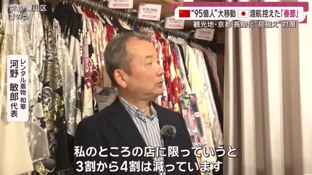 和服租赁店店主表示,中国游客减少对店里销售额影响尤为明显
