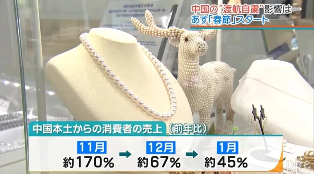 同样受到影响的,还有冲绳县内唯一的百货店——琉贸百货。琉贸百货销售部科长仲田淳表示:“来自中国的顾客,在去年11月之前一直保持增长,但从12月开始,就低于前年同期了。”去年11月之前,中国大陆游客的销售额同比一度达到170%,表现非常强劲,但进入12月后却明显下滑,12月约为67%,1月更是降到45%。