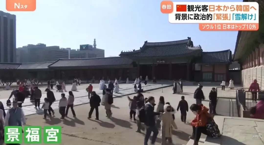 日媒发现了一个非常明显的变化,今年春节,中国游客正在转向韩国。数据显示,春节期间赴韩中国游客预计同比增长44%。在中国大型旅游网站的人气目的地排行榜中,首尔直接登顶第一,而日本,已经跌出了前十。