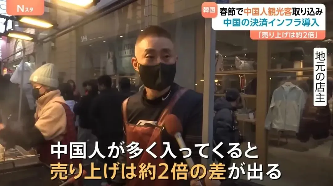 一位韩国小吃店主更是直言不讳:“中国游客一多,营业额差不多翻了一倍。”
