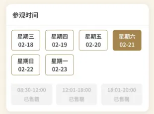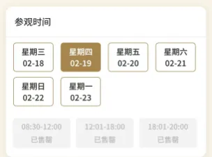 发布君搜索成都博物馆票务系统小程序发现,2月18日-2月21日门票已约满,春节假期其余时间尚有余票。