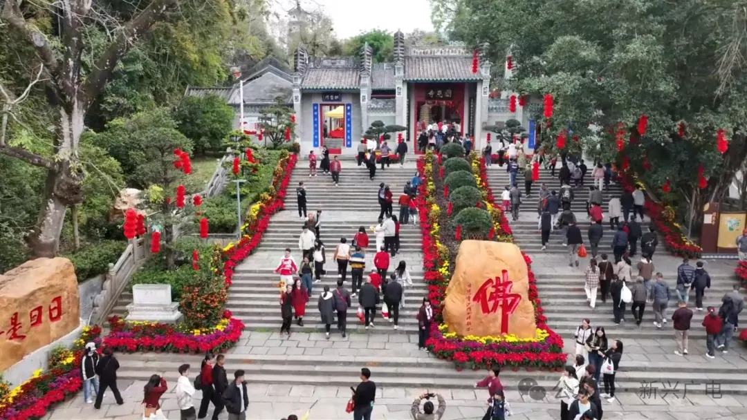 丙午马年正月初一,新兴县六祖故里旅游度假区迎来新春出游高峰,国恩寺香烟缭绕,春意盎然,各地游客踏春祈福、赏景游园,尽享禅都新春年味。