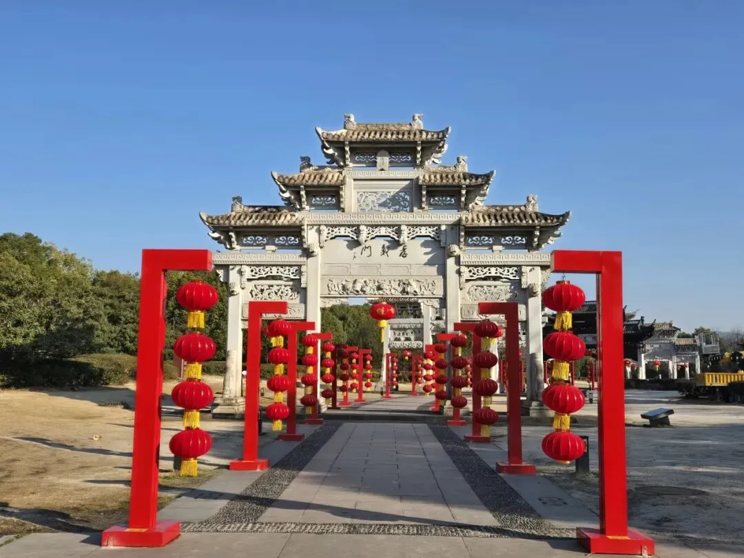 十里红妆灯笼阵:九座牌坊群下,百盏红灯笼高悬,将“江南第一家”匾额映照得庄重喜庆