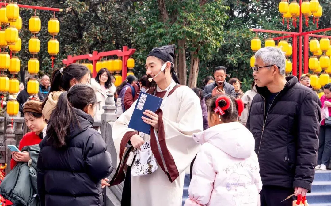 为突破传统游览模式,增强游客参与感与文化代入感,景区推出“NPC实景剧游”,活动现场,一众“宋潮人物”穿梭于亭台楼阁之间,与游客妙语连珠、互动频频,活动广受年轻群体与家庭游客好评,成为当日最具人气的文化亮点。