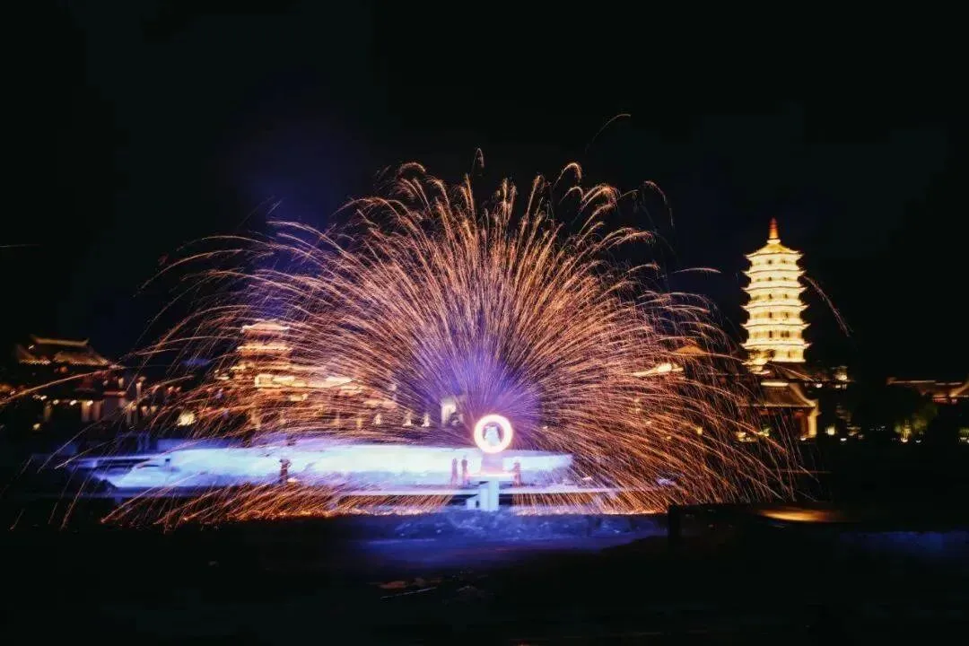 【★非遗绝技】:非遗打铁花表演,“铁树梨花”,烟花秀,非遗火壶,火红兆丰年;