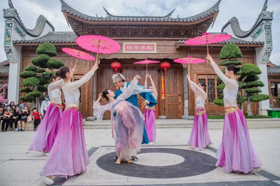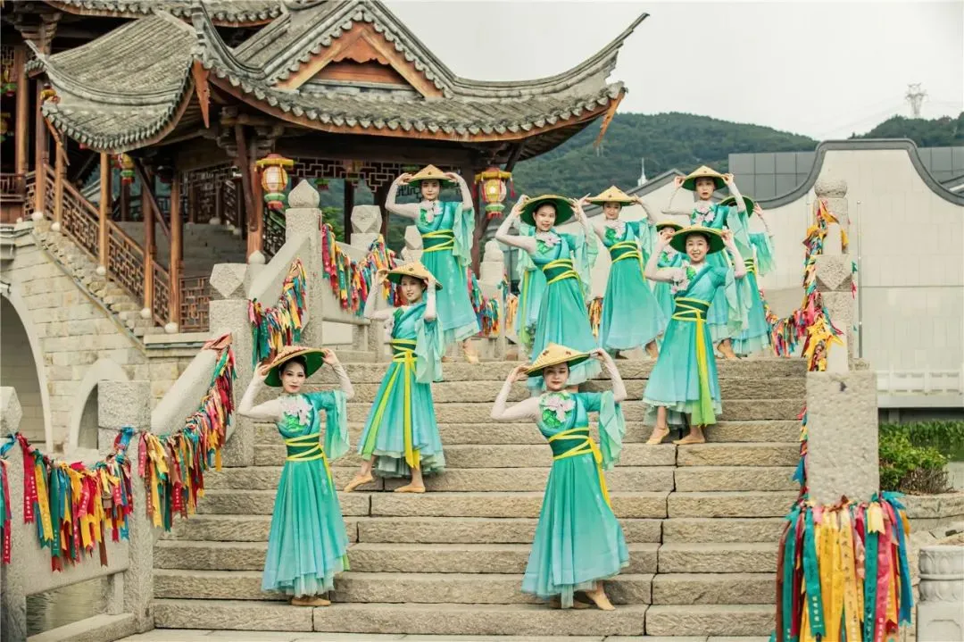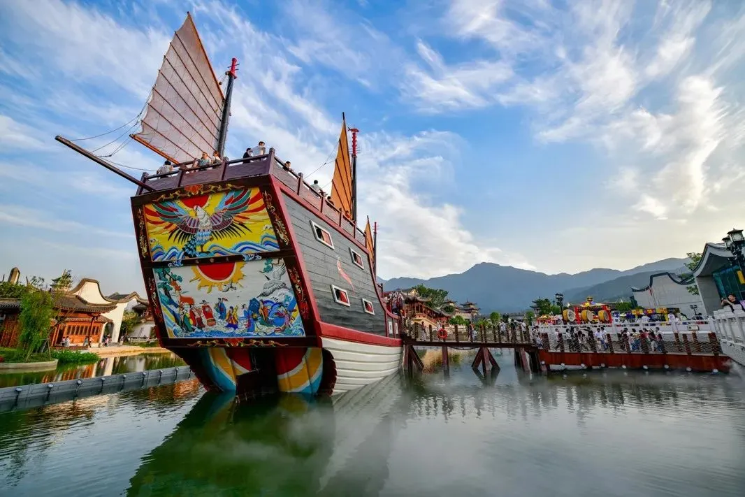 温岭出发,车赴福州,游览【闽越水镇】,闽越水镇位于福州闽侯竹岐,占地约3000亩,总投资约93亿,水镇紧紧围绕“乡愁”这一核心内涵,以“海丝闽越”为主题,借鉴“三山一水、一楼双塔”的城市格局,通过一系列的主题文化体验式商业来讲述福州的历史文化故事,重拾福州百年水乡风貌,再现“百货随潮船入市,万家沽酒户垂帘”的优美意境。清微楼、福船工坊、闽商会馆、闽浙总督部院、临水奇境、青红酒坊、福致书院等等。。。整个项目青砖黛瓦雅致天成,每一处工艺都承载着传统古建之美的哲思,传承着福建千年历史文化的精粹,于雕廊画栋之间深藏诗书礼制。19:00晚间有斥资3亿打造的真人实景大型演艺「寻梦•千年闽越」表演时间45分钟(演出票费用已含)。后适时入住酒店。