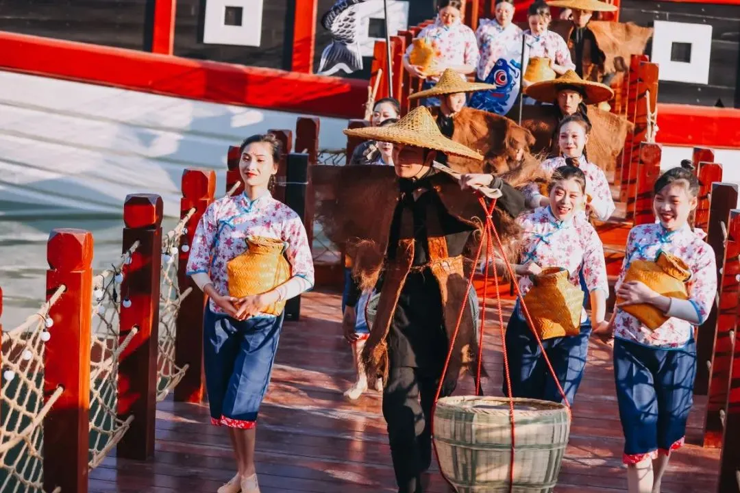 除此之外,在景区的不同时段,近百场好戏轮番上演,清徽楼内的《礼仪之邦》古韵大气,福船上的《升/降帆仪式》海丝韵味十足,榕城艺库一曲《渔灯祈福》将平安祝福传递,篝火晚会八方宾朋载歌载舞欢庆,街头杂技高超的技艺也一定会让你屏住呼吸,大呼刺激!